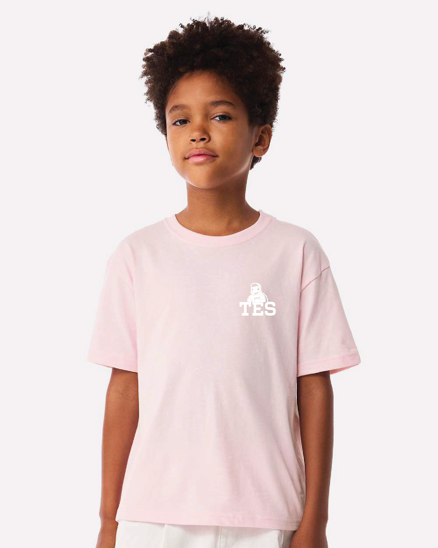 Boxy relaxed fit. Double-stitched neck. Semi-drop shoulder. Side seamed featuring a printed deisgn.