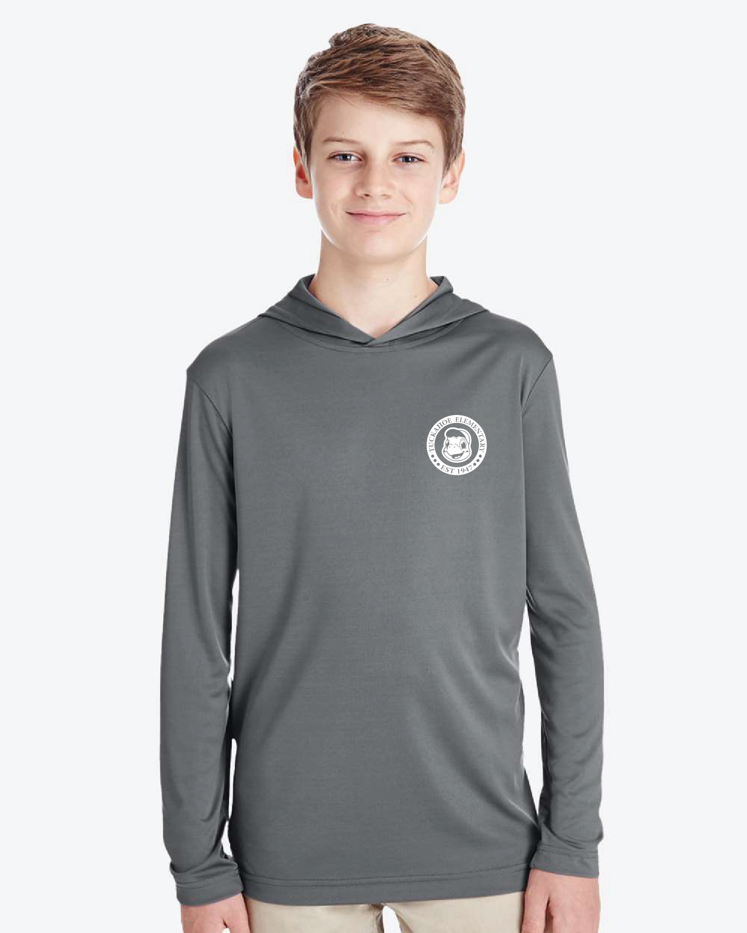 Polyester interlock with moisture-wicking and uv pro features a printed front and sleeve design.